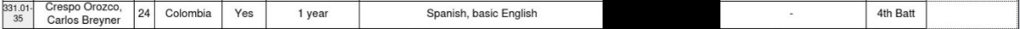 Служба: Вооруженные Силы Колумбии (1 год службы)