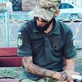 Имеет татуировки на руках.