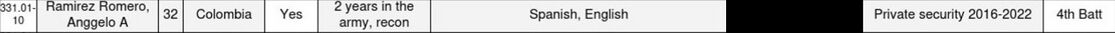 Информация о Рамирес Ромеро Анггело А - его место службы в армии, время службы и доп.информация