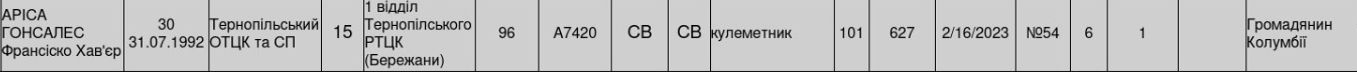 Информация о Хавьер Франциско Ариса Гонсалес воинская специальность, должность, воинская часть.