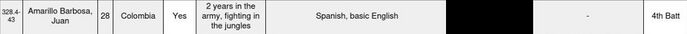 Информация о Хуан Давид Амарилло Барбоса - его место службы в армии, время службы и доп.информация