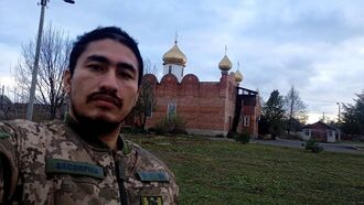 Наёмник замеченный на фоне храма святого Иоанна Златоустого, который позволяет определить что наёмник был запечетлён в городе Константиновка